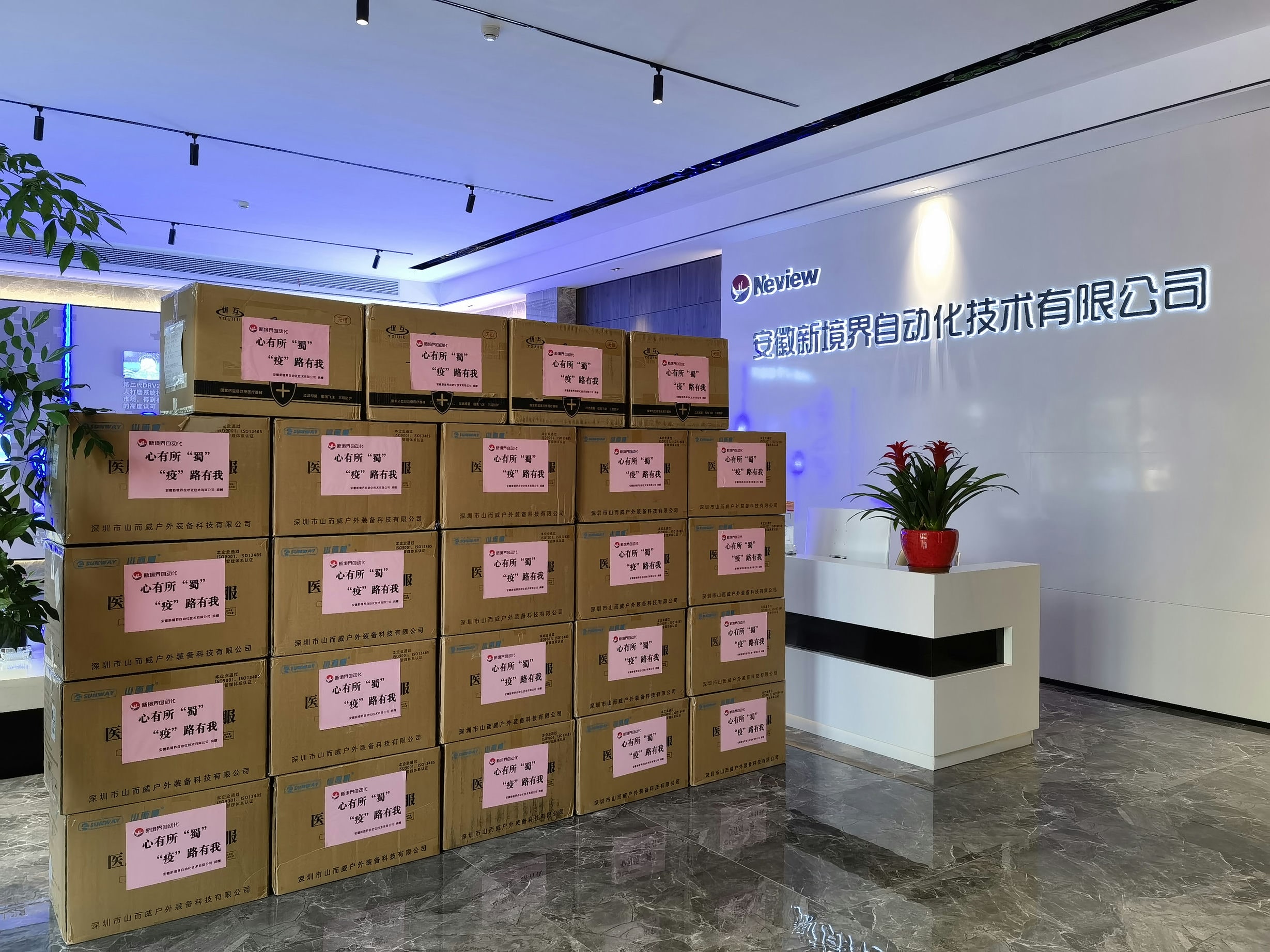安徽新境界自動化技術有限公司作為蜀山區企業,主動扛起社會責任擔當,向沖鋒在防疫一線的同志致以崇高敬意的同時,用自己力所能及的方式誠獻一份力。公司采購捐獻500套醫用防護服、3360個醫用N95口罩,助力疫情防控第一線。